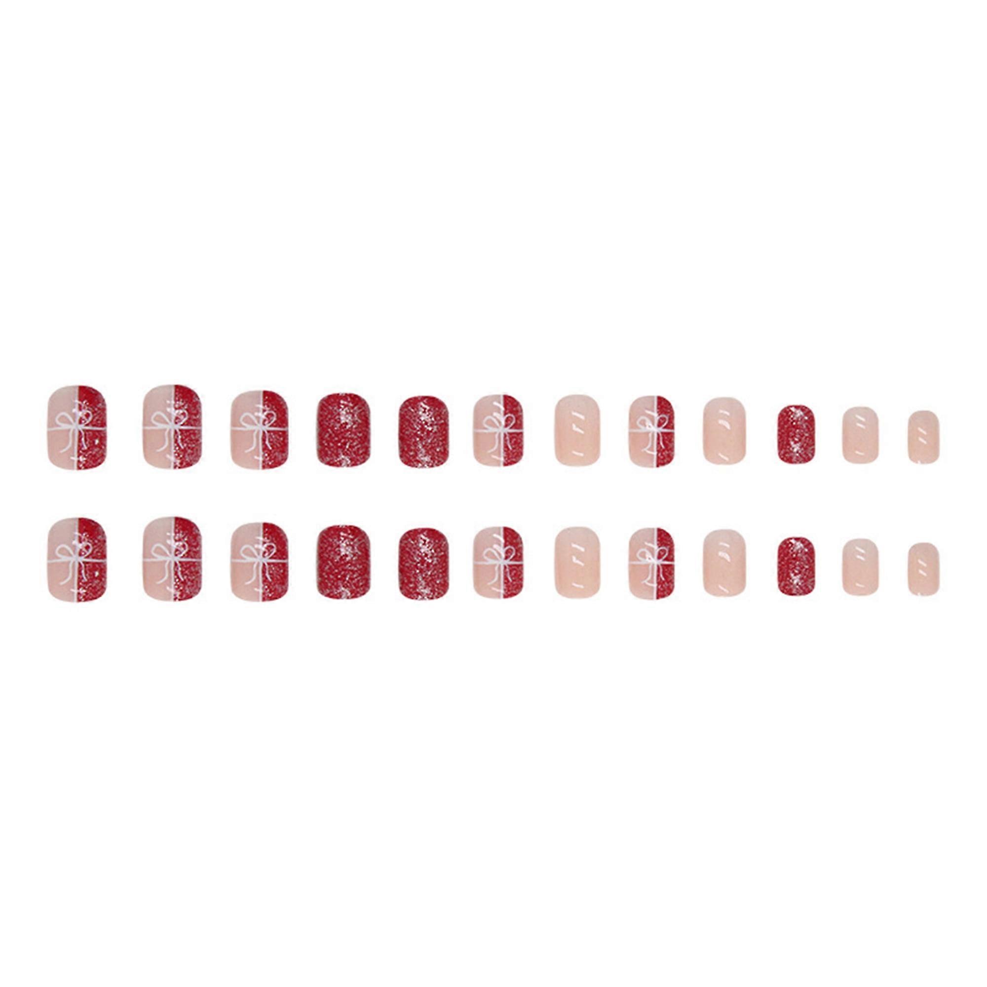 Christmas Press on Nails 24Pcs Short Nails with Bow Glitter Design