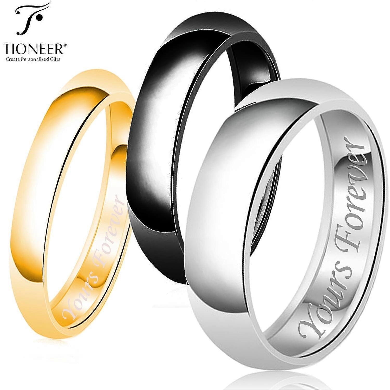 Tioneer Stainless Steel 316L in Silver / 14K Gold / Black IP Plated Wedding Band Promise Ring CZ Comfort Fit 3mm - 10mm Yours Forever Engraved