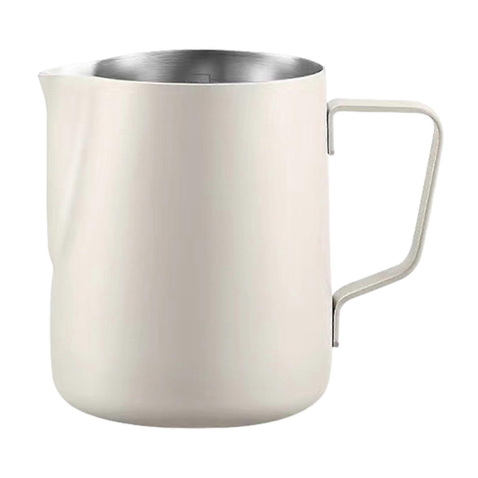 Milk Frothing Cup with Clear Scale - Ergonomic Handle, Stainless Steel Coffee Latte Art Cup for Home Kitchen