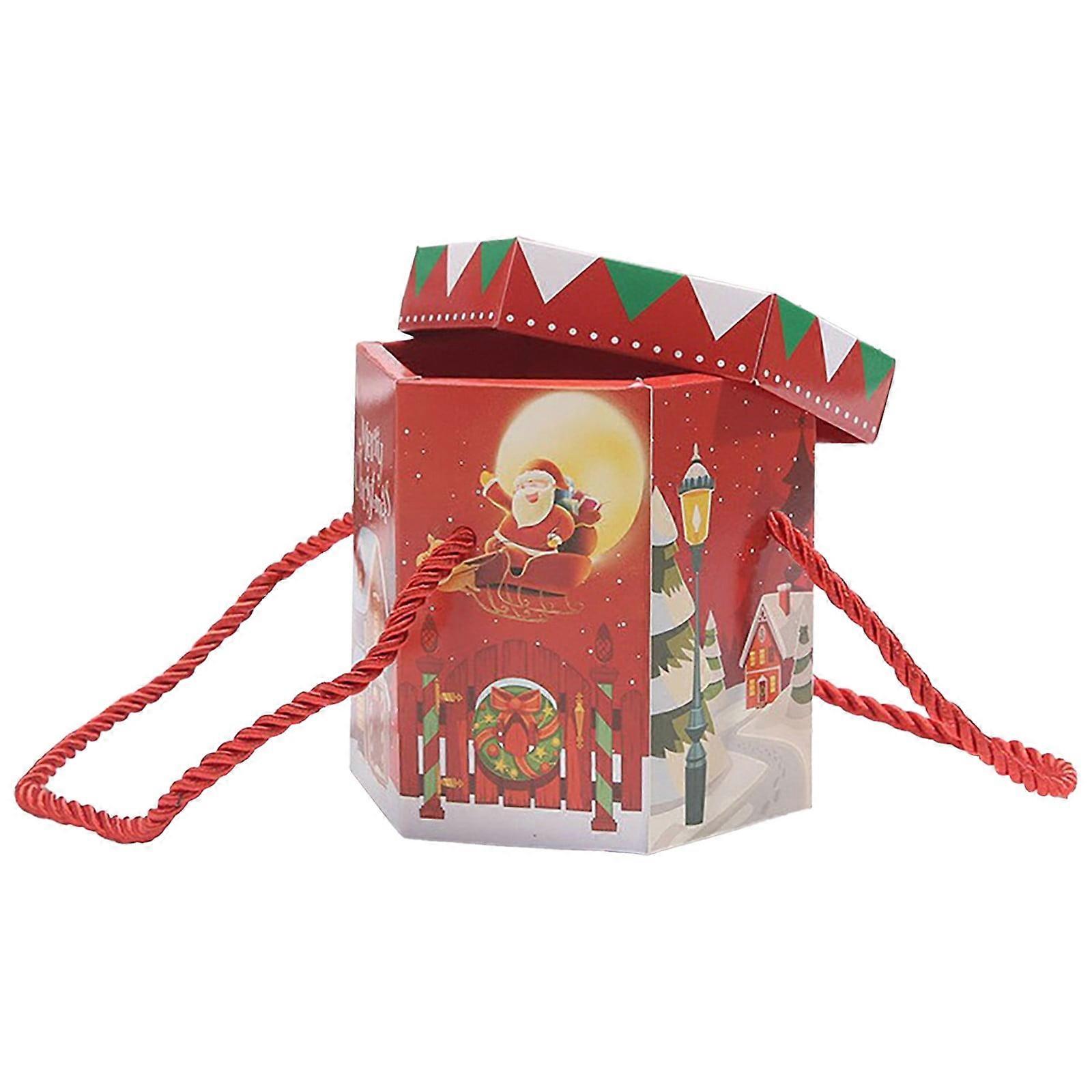 Yakbaofuo Christmas Hexagon Christmas Christmas Fruit Box Tote Bag Rope Candy Box Christmas Christmas Fruit Cookies Creative Gift Baking Paper Box
