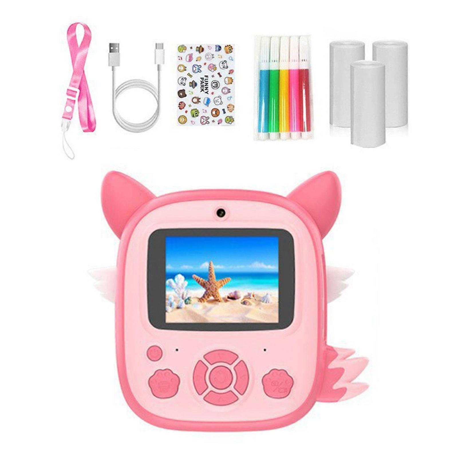 Instantly Print Camera For Kids With 3Roll Photo Paper Silicone Animal Design 1080P Video Double Lens Travel Friendly 48MP Pink color
