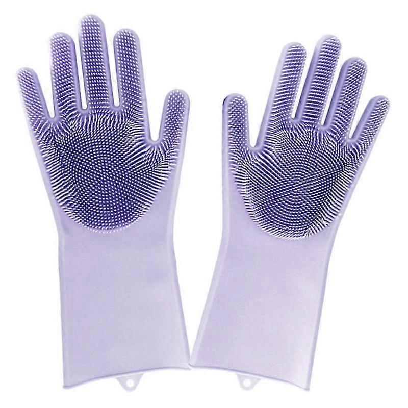 Magic Silicone Gloves with Wash Scrubber, Reusable Brush & Heat Resistant Kitchen Tool Gloves for Cleaning, Dish Washing, Car, Pet Hair Care (1 Pair)
