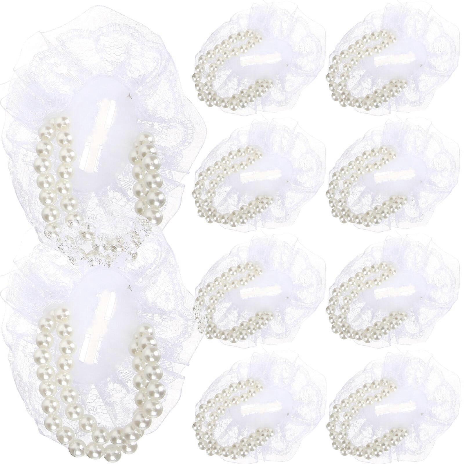12 Pcs Bridal Wristband Corsage Wedding Accessories Shower Wristlet Bracelets Boutineer Magnets Pearl Lace Bride