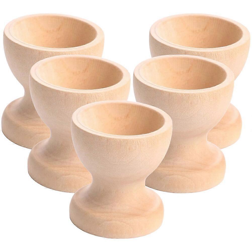 Mizh 5Pcs Easter Fake Egg Cup Wood Holder Festival Wood Decor Wooden Eggs Holding Stand Kids Diy Craft