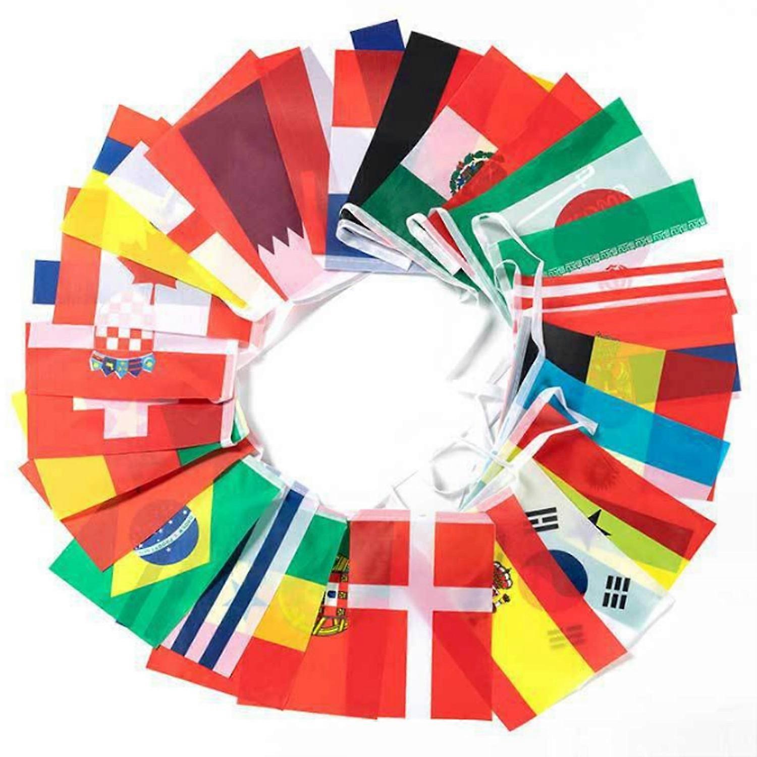 Feature: 1. Screen Printing Process: The 95ft 100 countries string flag is printed using a screen printing process, which undergoes high temperature color fixation, resulting in bright colors, no color difference between the front and back, and no fading after washing. 2. Waterproof and Sunscreen: The flag surface is treated with nano coating technology to achieve the hydrophobic function of lotus leaves, waterproof and sunscreen, and can also be used outdoors for a long time. 3. Trim Neatly and Meticulously: The edge of the flag is cut using thermal cutting technology, without burrs or wire drawing, with a long service life and fine workmanship. 4. Professional Lathe Sewing: The 100 countries string flag waist stitch evenly to avoid the phenomenon of drawing. 5. Versatile Party Decorations: Our 95Ft 100 countries string flag is the perfect addition to any celebration. Whether it's a lively party, a festive bar ambience, a sports club gathering, a school festival, or any other celebration. Specification: Item Type: 95ft 100 Countries String Flag Product Material: Polyester Weight: Approx. 178g / 6.3oz Single Flag Banner Size: Approx. 14x21cm / 5.5x8.3in Total Length: Approx. 29m / 95.1ft. Package List: 1 x 95ft 100 Countries String Flag