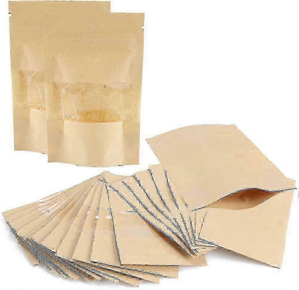 50pcs Kraft Paper Stand Up Bags with Window 5.5x3.5 Inch Self-Sealing Zip Lock Pouch for Food Storage Edition 1104