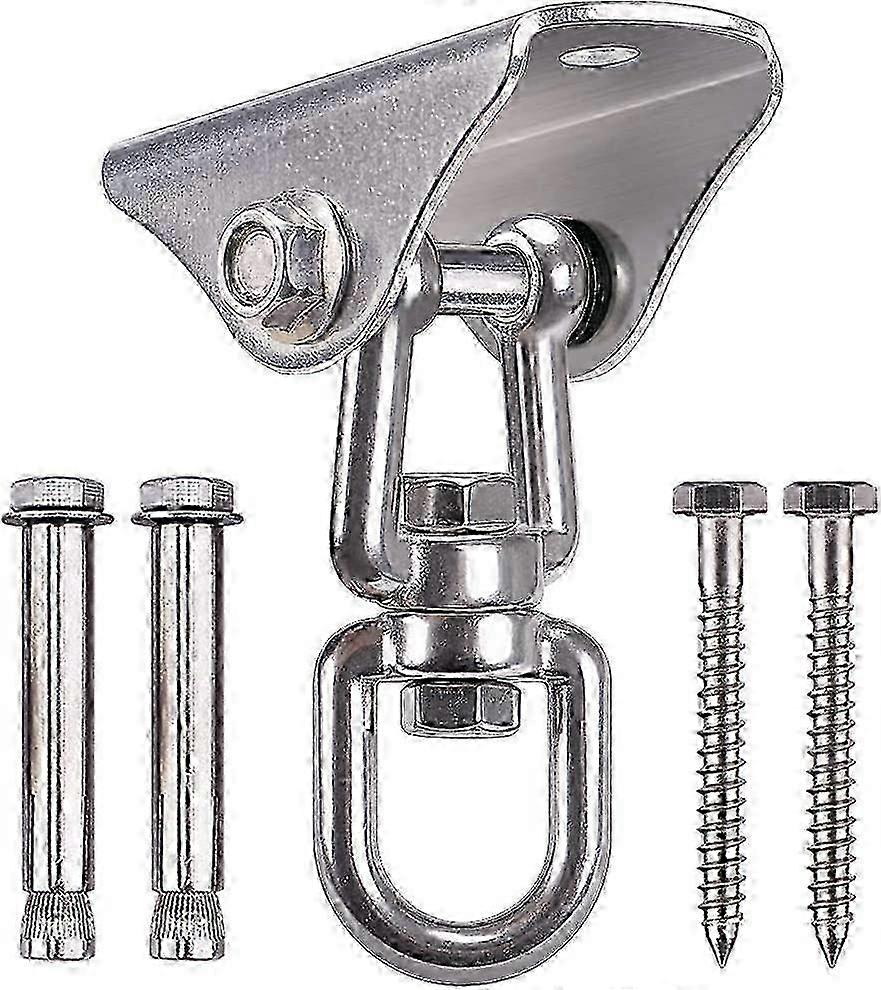 Usage Tips:INDUSTRIAL BUILT HIGH QUALITY swingset hangers, perfect swing set brackets for all swing set products indoors or outdoors including porch swing springs ceiling or wooden mounts, gymnastics rings and hanging aerial yoga inversion trapeze swings seats.SPECIAL DESIGNED: Suspension hooks support 360 Rotated freely swing, Innovative and patented designEASY INSTALLATION: We've pre-drilled two 0.31" holes for bolting installation to concrete or wooden beams, cedar wood, rafters, 2 Screws fit wood application and 2 expansion bolts fit concrete application are included, a unique one piece design and can be installed in minutes.SAFE AND SECURE: Heavy duty commercial quality swing hangers are rated for use by children and adults, and designed for residential at a 1000 lb rating.