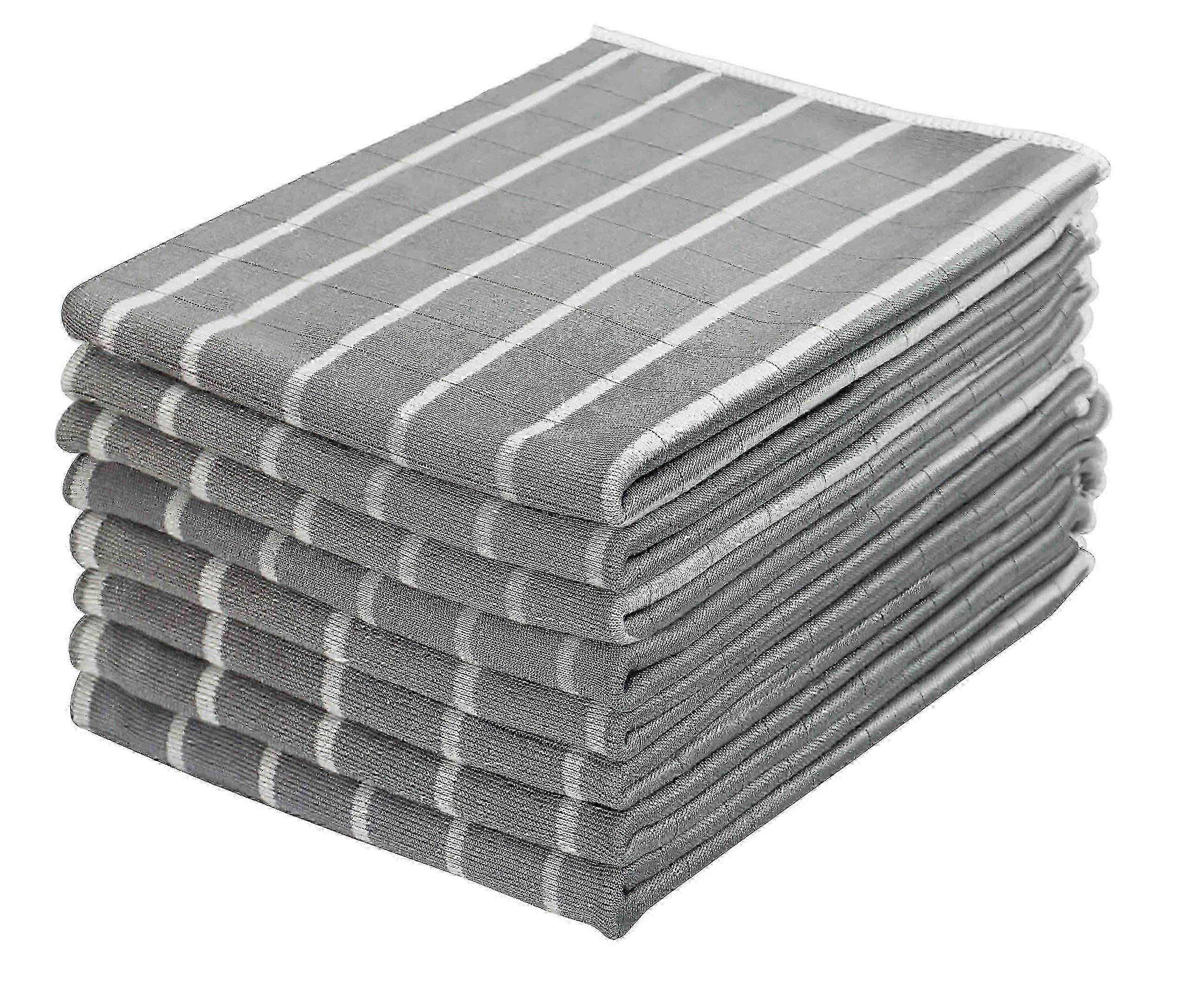Set of 8 Bamboo & Microfibre Tea Towels, Lint-Free Kitchen Cleaning Towels 65x45cm in Grey