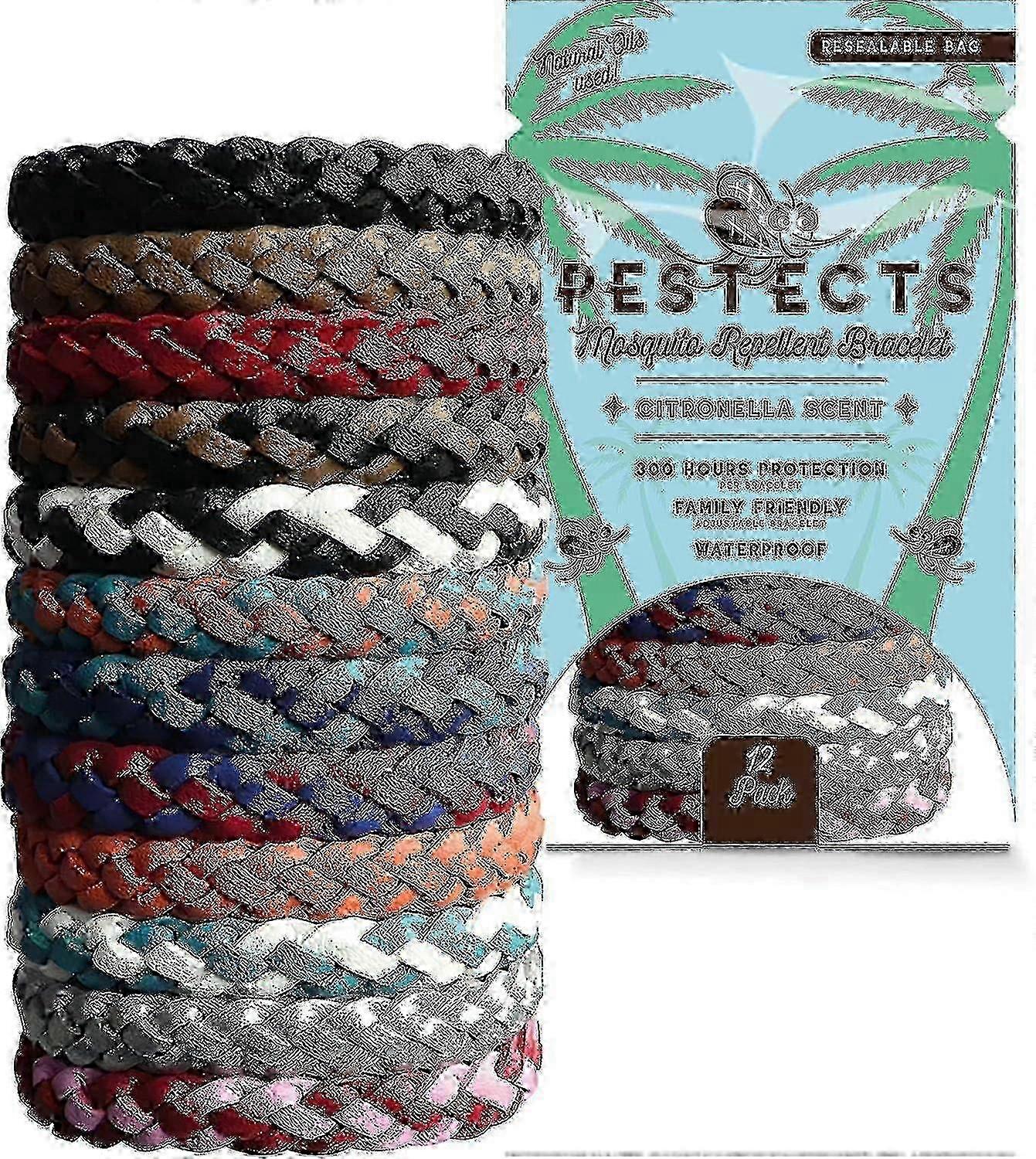 12 Pack Natural Mosquito Repellent Bracelets for Adults & Kids - 300 Hour Protection, DEET-Free, Adjustable Leather Band - New Arrival