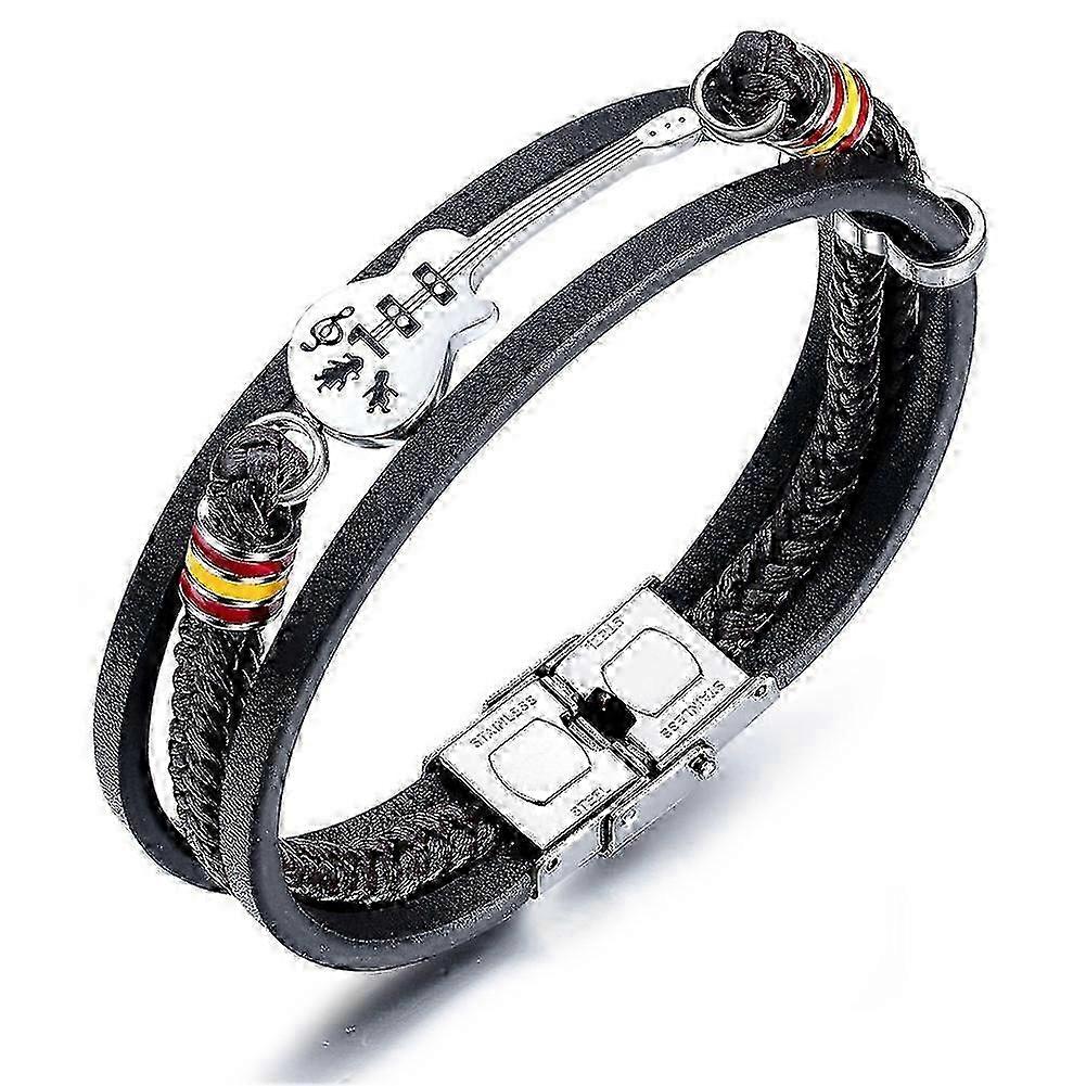Men's Leather Braided Rope Multi-Layer Guitar Bracelet - Punk Style Jewelry Gift