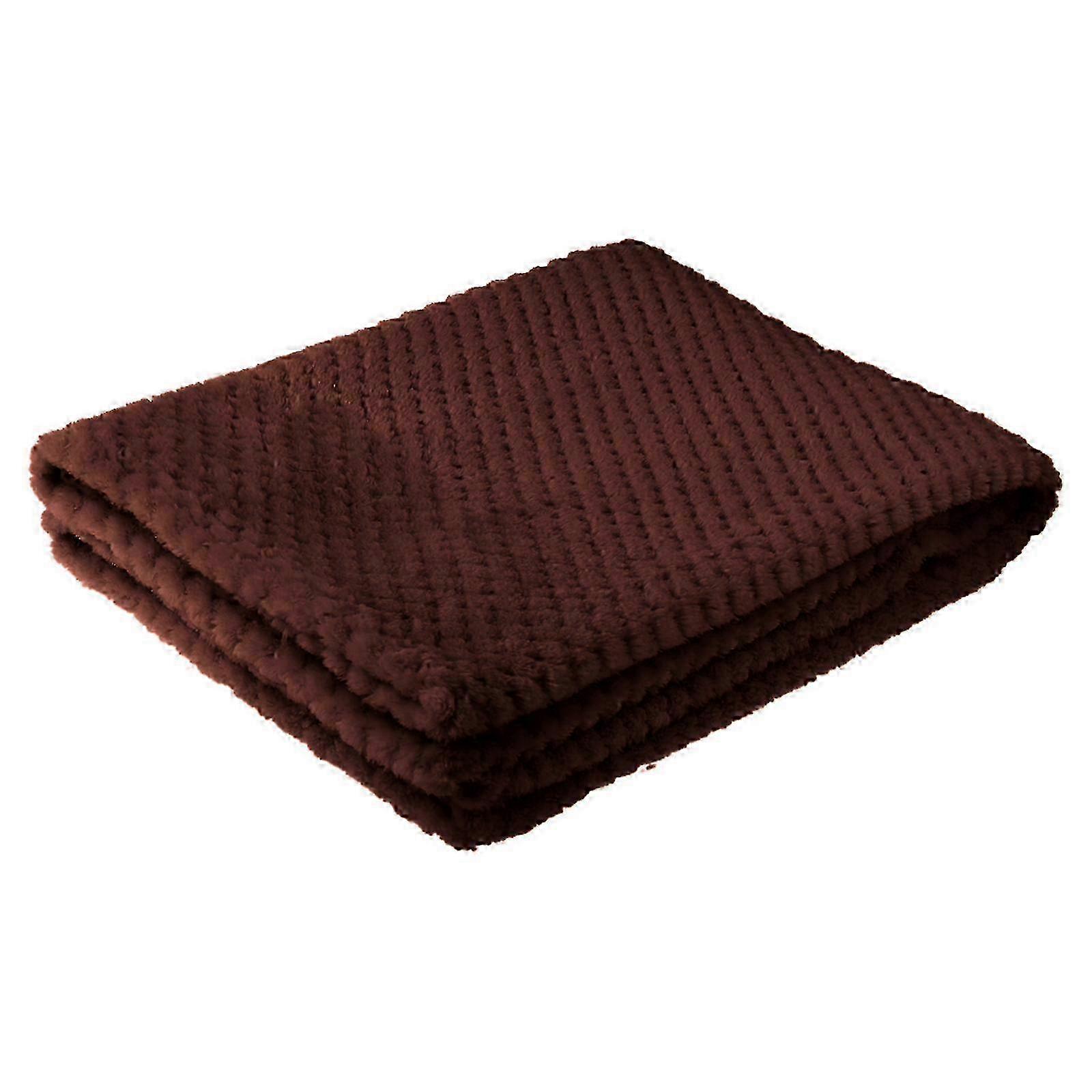 Thickened Solid Color Pineapple Grid Blanket Coral Fleece Lightweight Throw Blanket for Sofa Bed Winter Soft Warm Blanke 200x230cm Brown