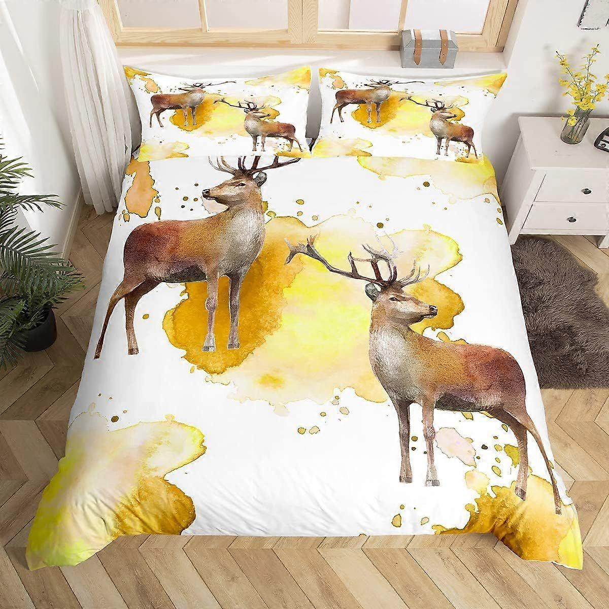 (color39) Cute Deer Duvet Cover King Brown Moose Bedding Set Kids Bedroom Decor,Hunting Comforter Cover Woodland Jungle Animal Bed Set,Tie Dye Waterco