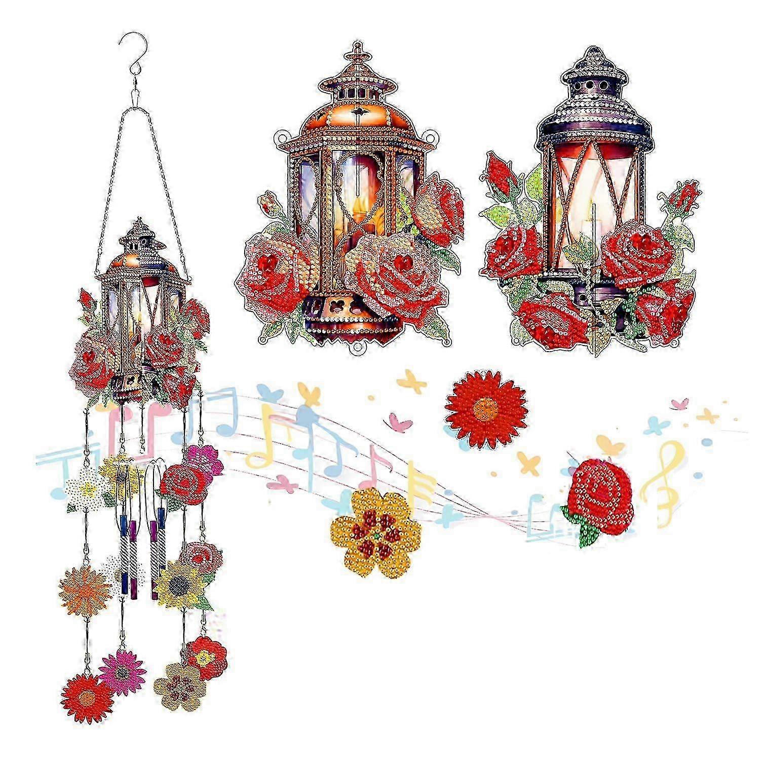 5D DIY Double-Sided Pattern Hanging Ornament with Crystal Diamond Art Flower Cage Wind Chimes for Indoor & Outdoor Use