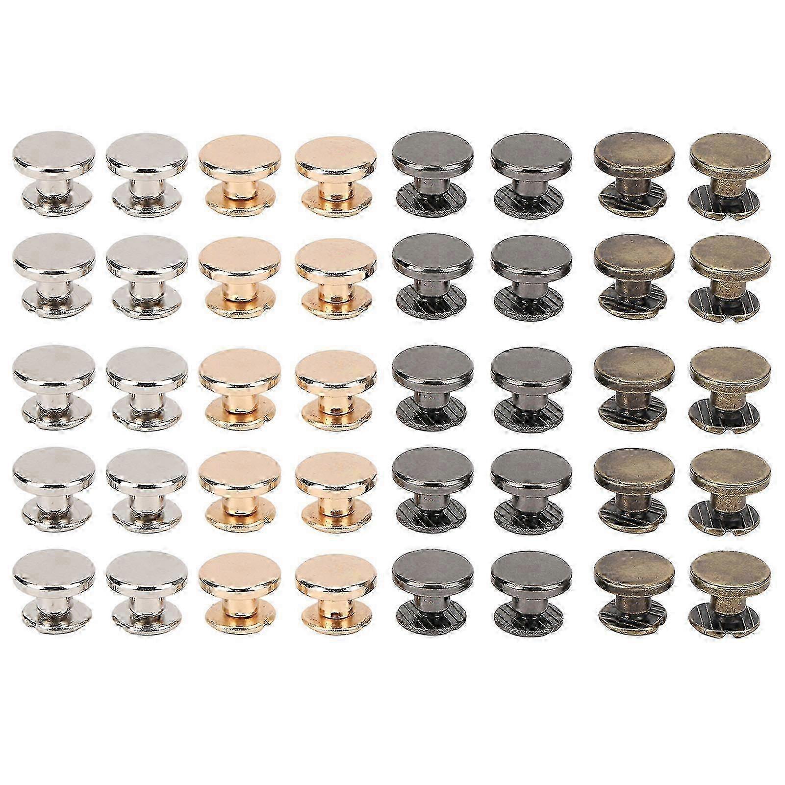 40pcs DIY Binding Screws: 4 Colors Flat Head, Smoother Metal Chicago Screws for Belts, Handbags, Shoes & Clothes