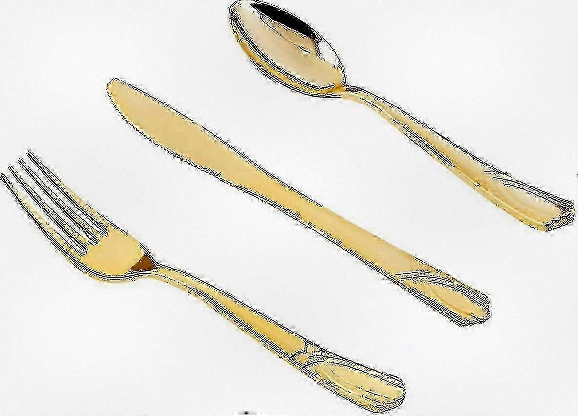 Gold Plastic Cutlery Set - 150 Pcs Flatware for Parties, Events & Catering - 50 Forks, 50 Knives, 50 Spoons