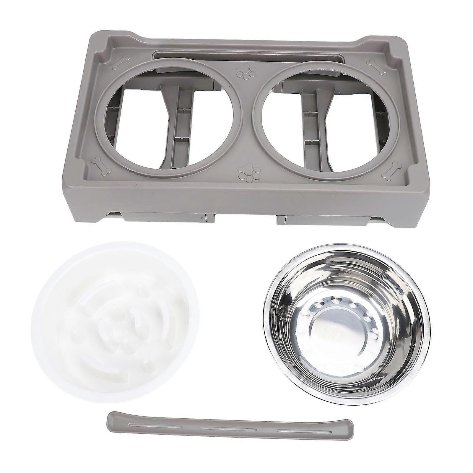 Elevated Dog Bowl Adjustable Height Promote Healthy Digestion Antislip Slow Feeder Food Water Bowl for Pets Gray