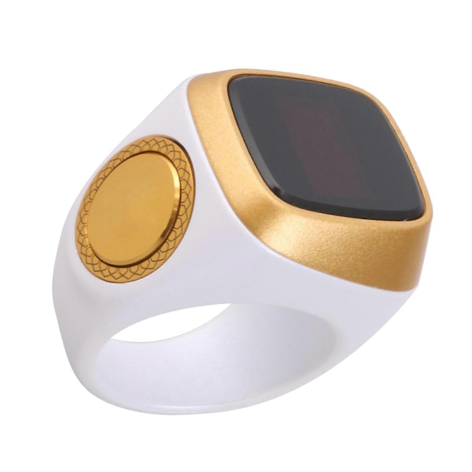Islamic Intelligent Finger Rings Digital Tasbeeh Tally Counter 22mm Zikr Rings with Prayer Reminder up to 9999 Counts White