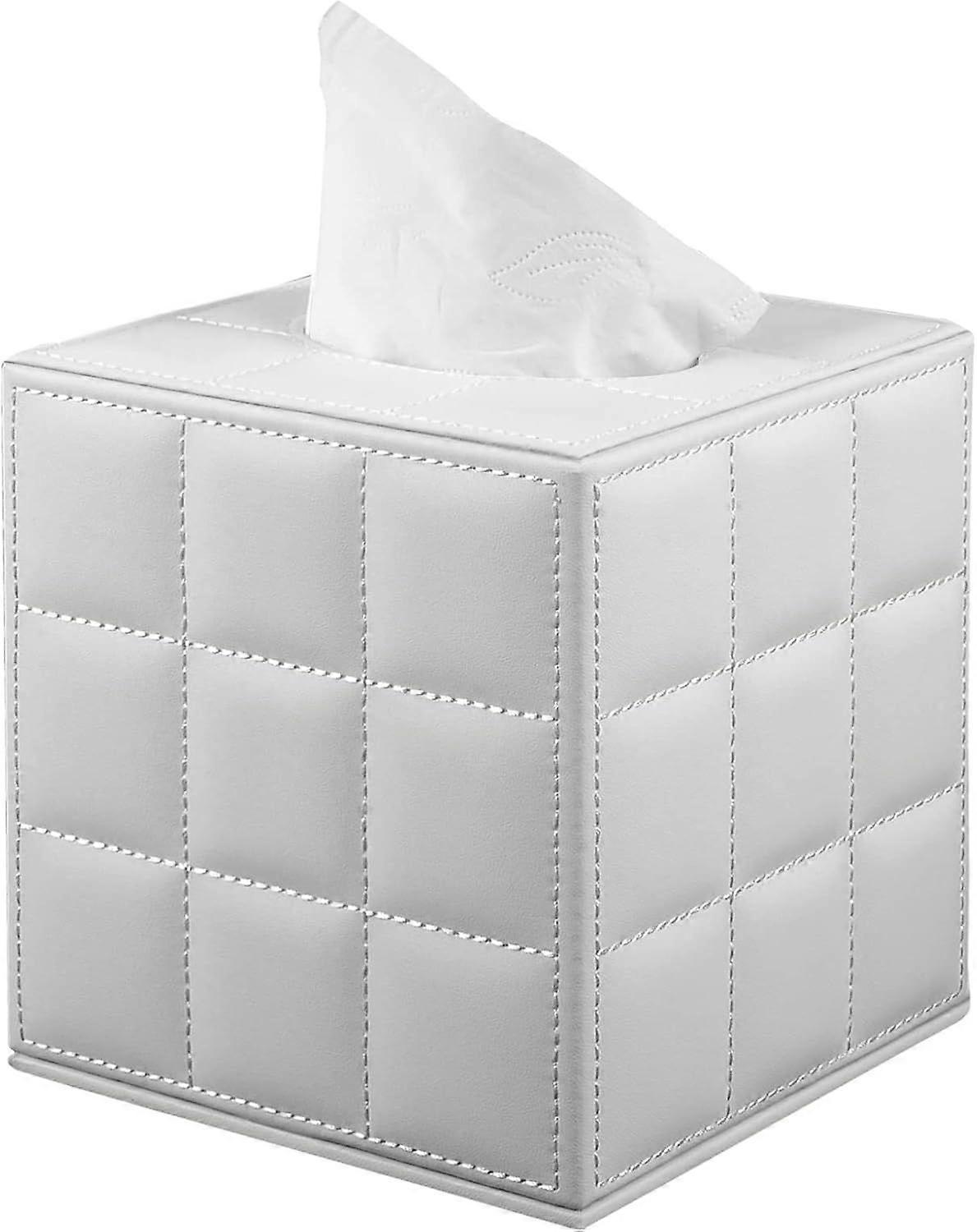 Leather Square Tissue Box Set, Napkin Storage, For Restaurant, Hotel, Office, Home (White Grid Line)