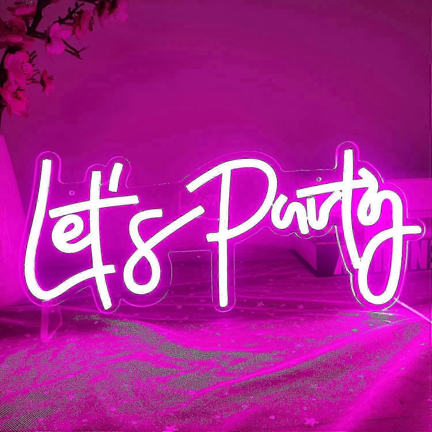Let's Party Neon Signs Neon Light Sign For Wall Decor 16''x 7'' Word Led Neon Sign Art Decorative Lights For Bachelorette Party, Engagement