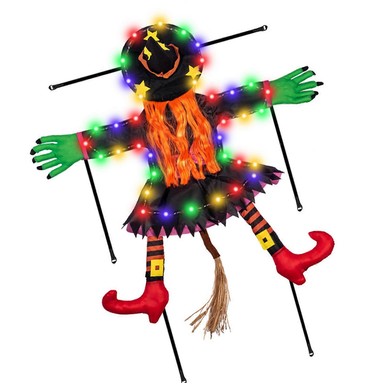 Quick Setup LED Witch Tree Decoration With Glowing Colorful Hair For Kid Friendly Outdoor Halloween Props Multicolor