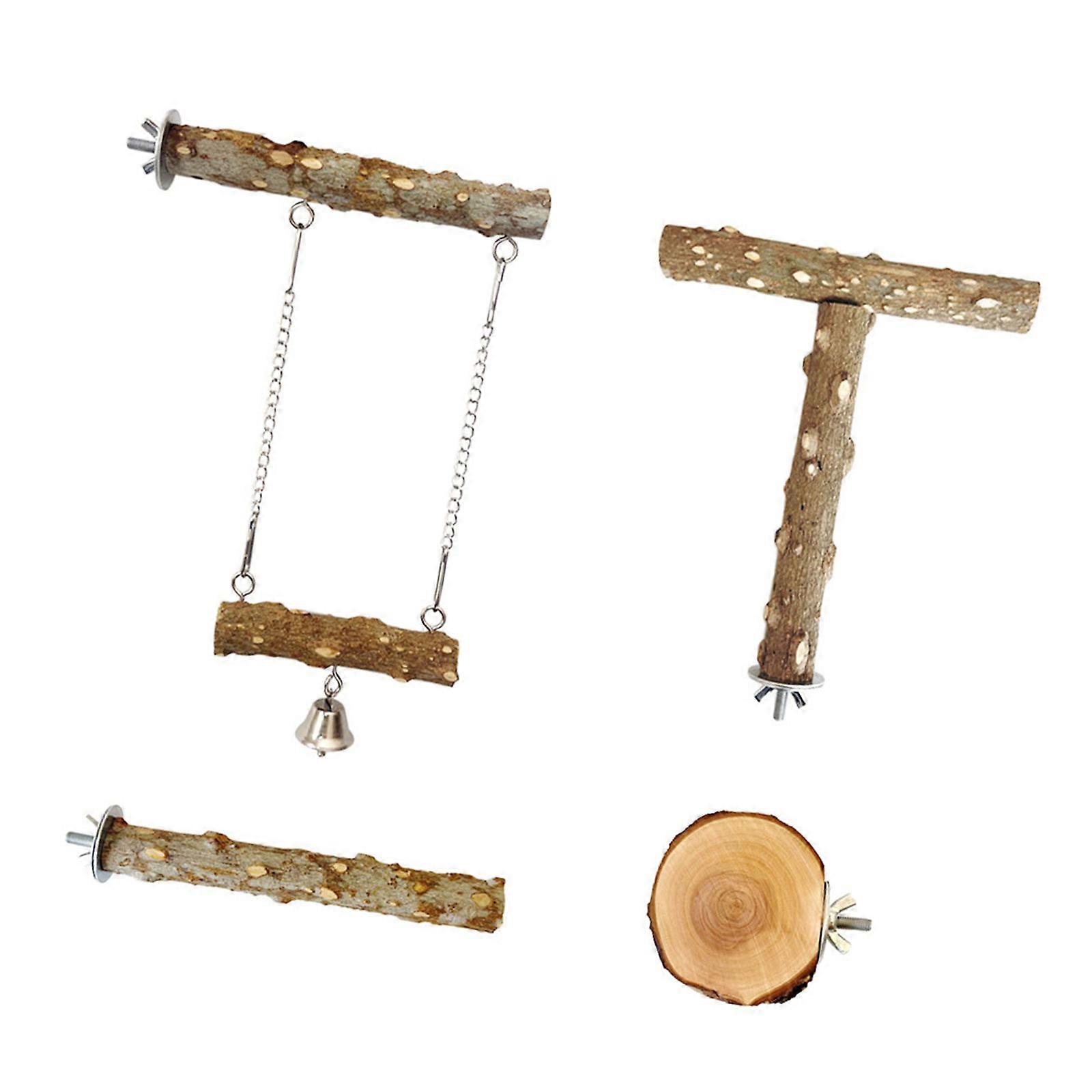 Natural Wood Bird Perch And Swing Set 4PCS Climbing Chewing Toy For Parrot Activity Entertainment Cage Hanging Toy Multicolor