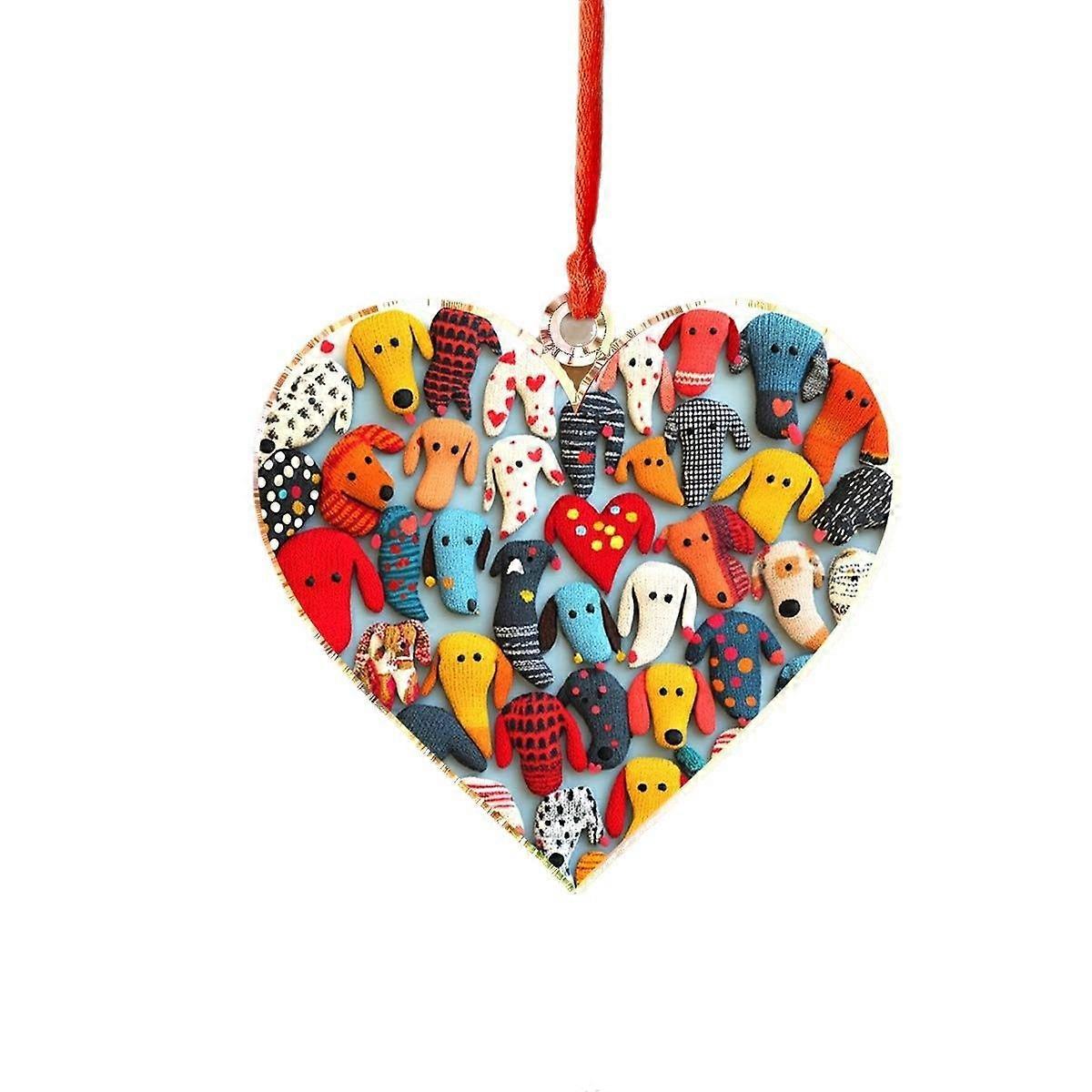 Christmas Dachshund Dog Hanging Ornament Heart Christmas Tree Ornaments Hanging Pendants Keepsake Decor for Xmas Tree Winter Holiday Xmas Gift