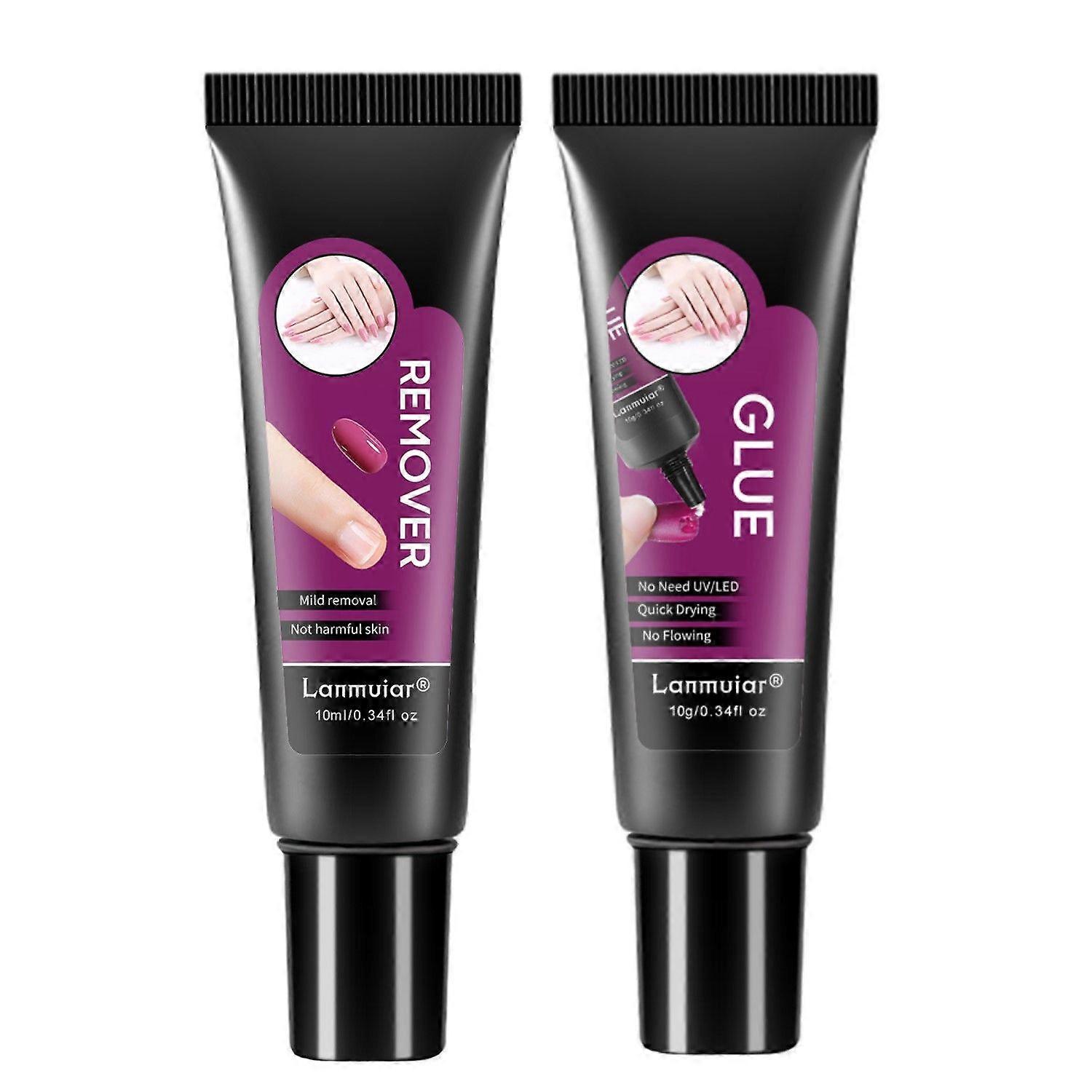 Solid Nail Glue Gel & Nail Remover Gel Kit Extra Strong Long-Lasting Adhesive for Press-On & Acrylic with Gentle Quick-Dissolve Formula for Safe, Eas