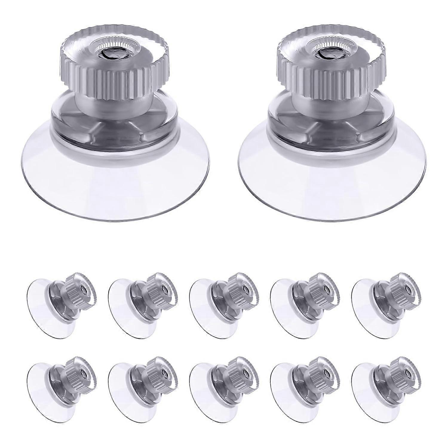 12 ventosas transparentes de 25 mm, con soporte y tuerca moleteada. Ideales para ventanas, espejos, paredes y puertas.