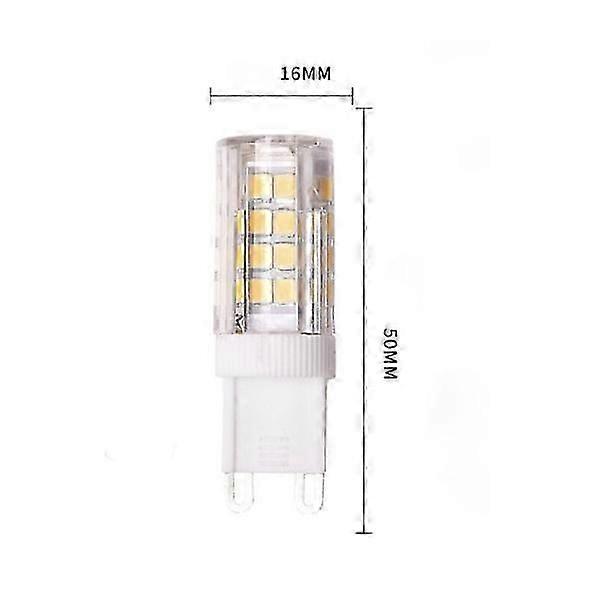 Caractersticas: Las bombillas LED G9 regulables son excelentes y compatibles con varios reguladores, proporcionando un excelente efecto de regulacin de 0 a 100 % sin parpadeos ni distorsin. Aptas para diversos tipos de bombillas G9. Ahorro de energa: Las bombillas G9 regulables de 5 W tienen una luminosidad de 430 lmenes. Esto equivale a una bombilla halgena de 40 W, pero consume solo el 10 % de la energa. Ahorre hasta un 90 % en energa y en su factura de electricidad. Luz clida: Esta bombilla LED G9 regulable emite una luz blanca clida que crea un ambiente acogedor. Alto ndice de reproduccin cromtica (CRI > 80). Ofrece colores ms confortables y protege mejor la vista. Fcil instalacin. Base de lmpara LED G9. Cumple con las dimensiones europeas del producto: 16 x 50 mm. Apta para voltaje CA de 220 V. No requiere transformador. Fcil de instalar o reemplazar; es un reemplazo directo para bombillas halgenas o G9 estndar. Garantizamos los derechos de nuestros clientes. Si tiene alguna pregunta, no dude en contactarnos; le daremos una respuesta satisfactoria lo antes posible.