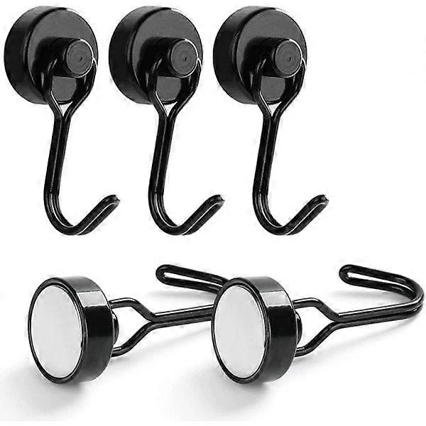 Ganchos magnticos, paquete de 5, ganchos magnticos resistentes de 30 kg, ganchos magnticos de neodimio para refrigerador, color negro
