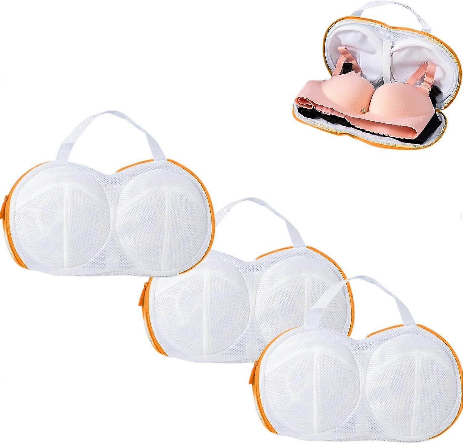Juego de 3 bolsas para lavar sujetadores, ideales para lavadora. Incluye cremallera. Color amarillo delicado. Tallas D a H.