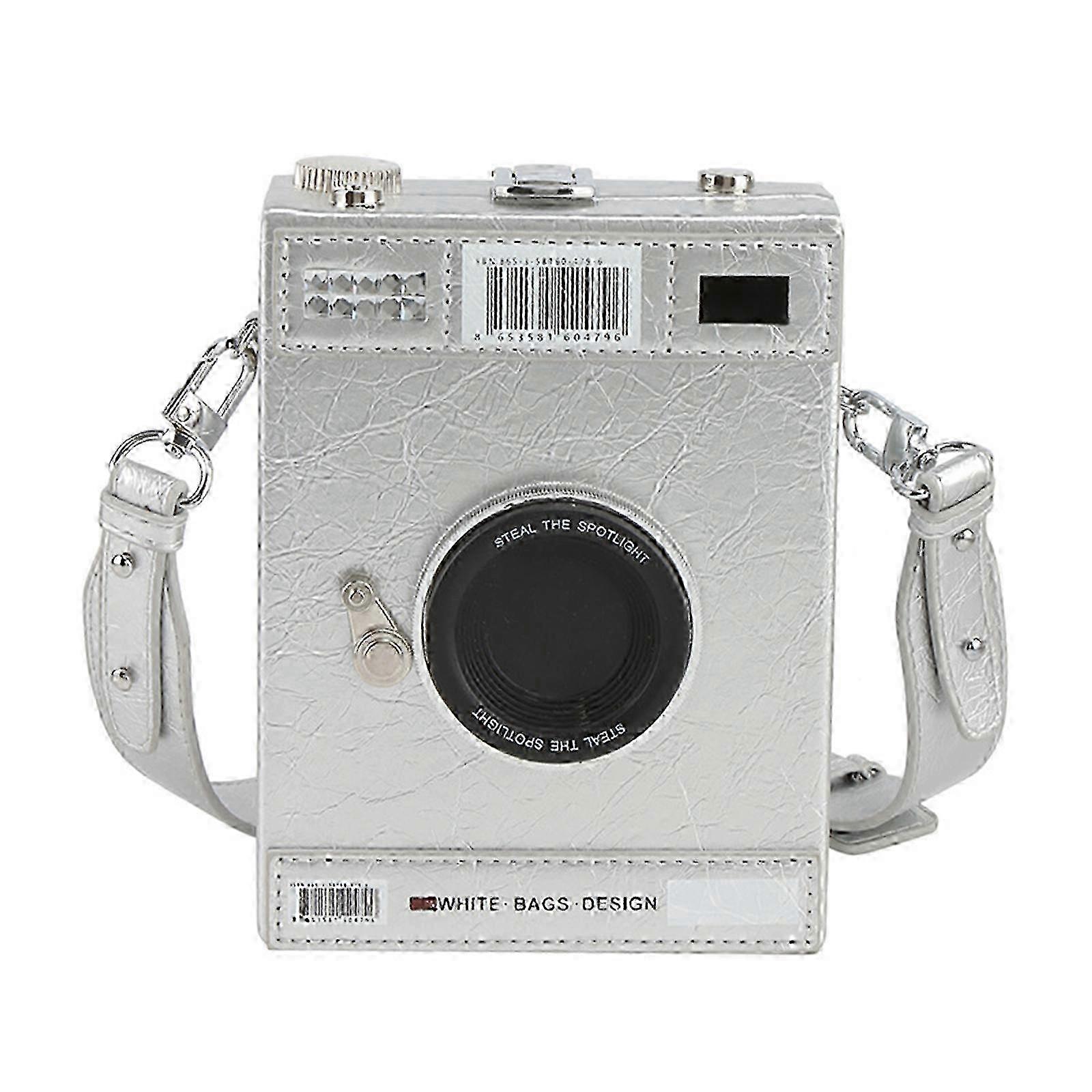 PU Leather Messenger Bag for Women Everyday Bag Camera Shape Crossbody Bag Ladies Commuting Bag Retro Shoulder Bag Silver