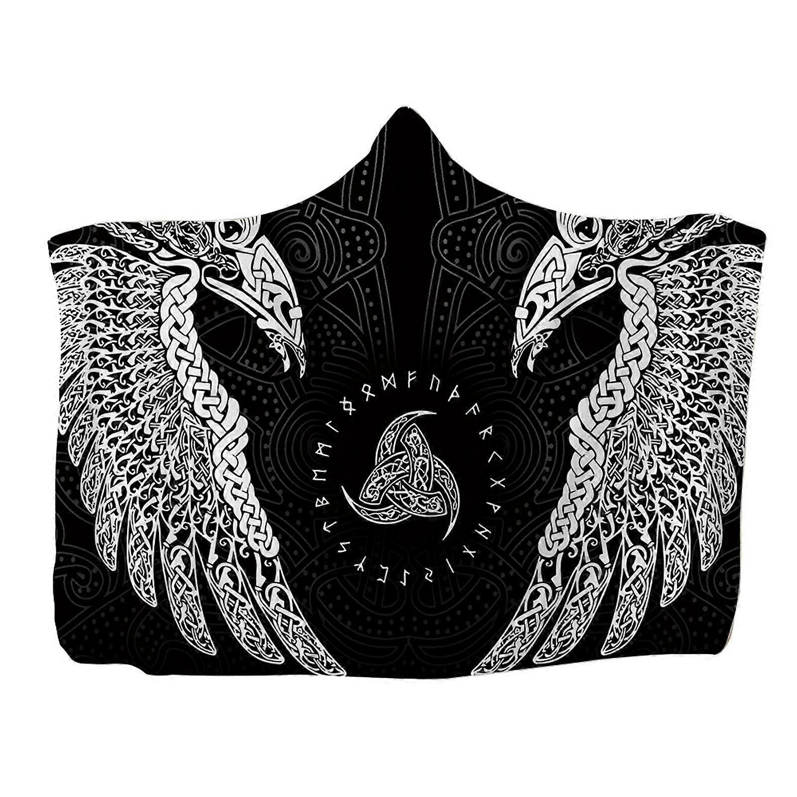 Tattoo Print Hooded Throw Blanket For Adults And Kids, Soft Fleece Flannel And Microfiber Wearable One Size