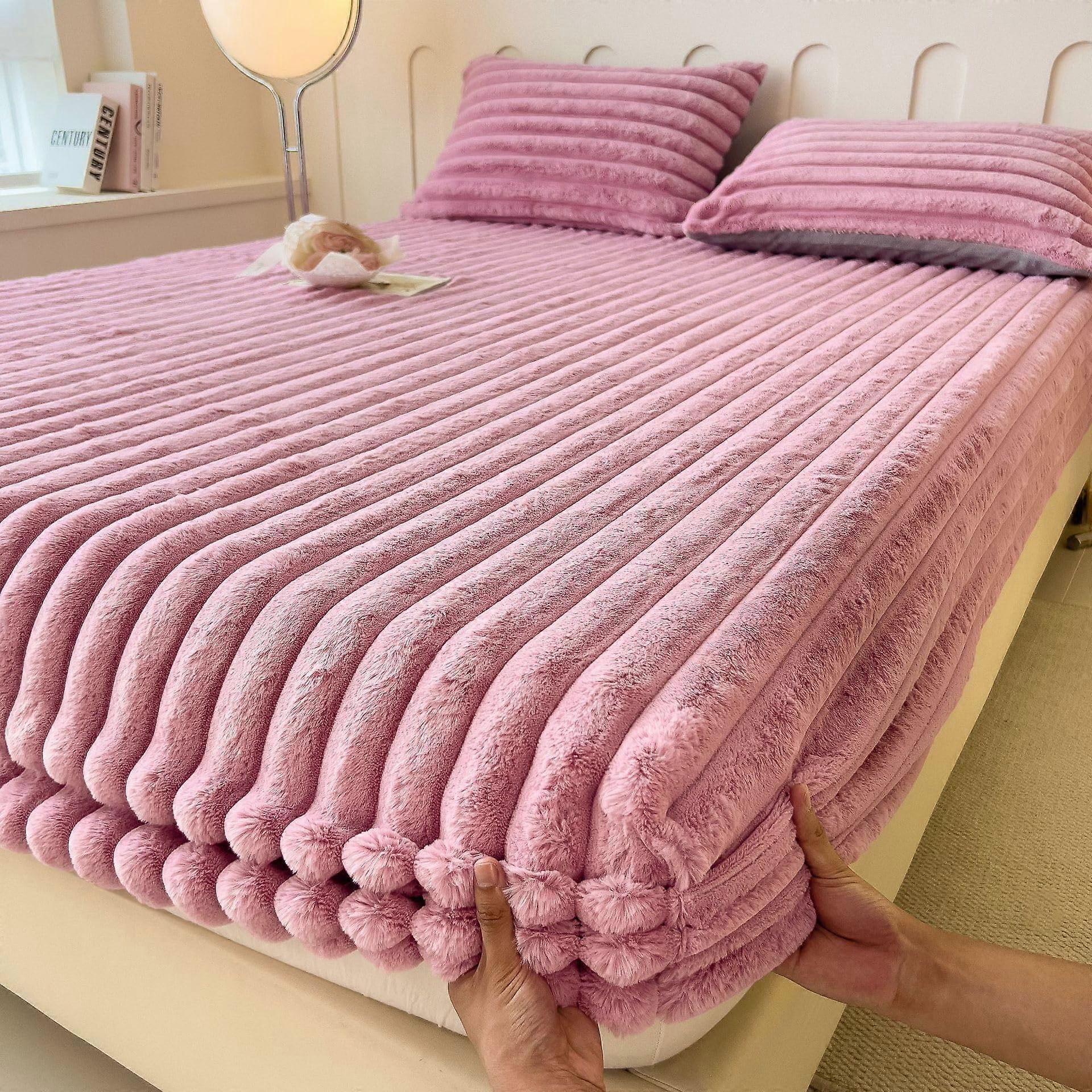 Soft Deep Pocket Bedding Fitted Sheet Queen Size 90x200cm Striped Easy Care Fits Mattress