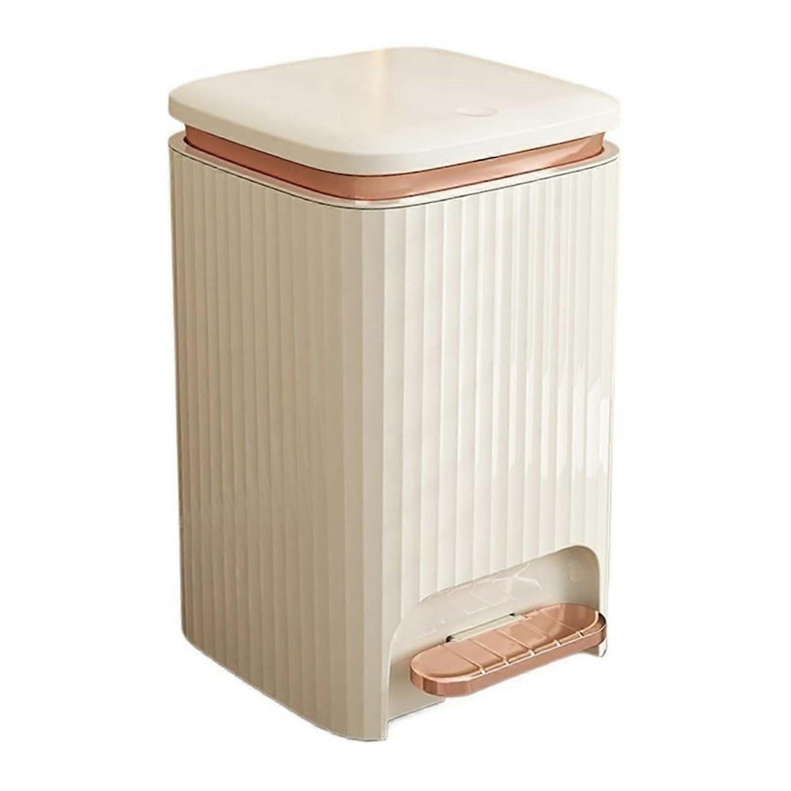 Waste Bin 9/12L Square Plastic Trash Can Pedal Lid Double Opening BuiltIn Pressure Ring Cream White Rose Gold 12L