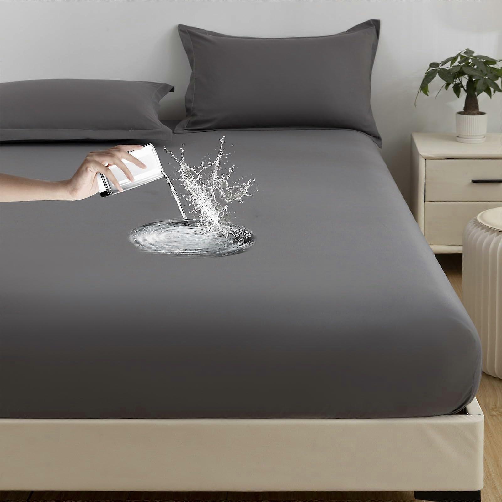 Waterproof Mattress Protector Double Fitted Sheet 200 x 220 cm 25 cm Deep Pocket Dark Gray 3Piece Set With 2 Pillowcases
