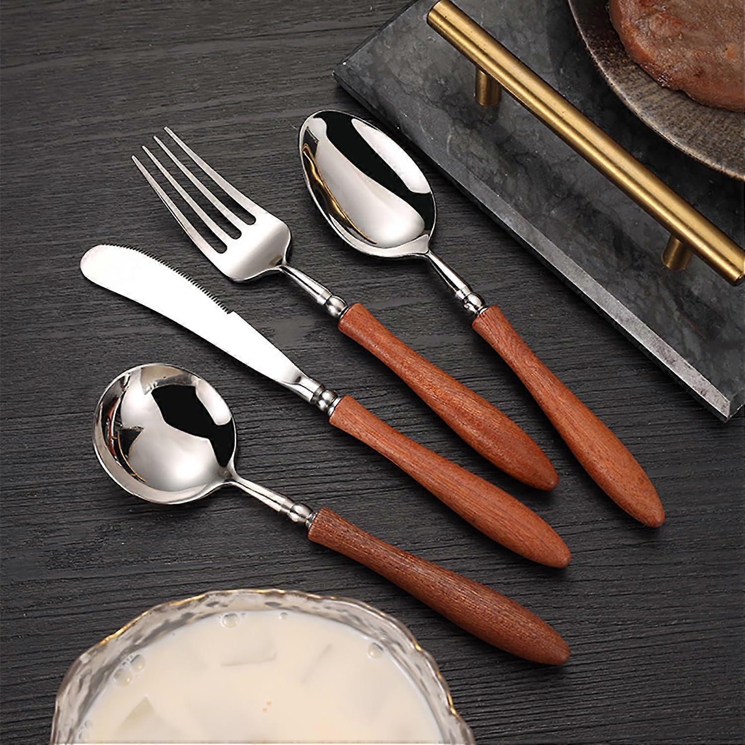 Stainless Steel Knife Fork 16Piece Flatware Set For 4 People Bamboo Wood Style Silverware
