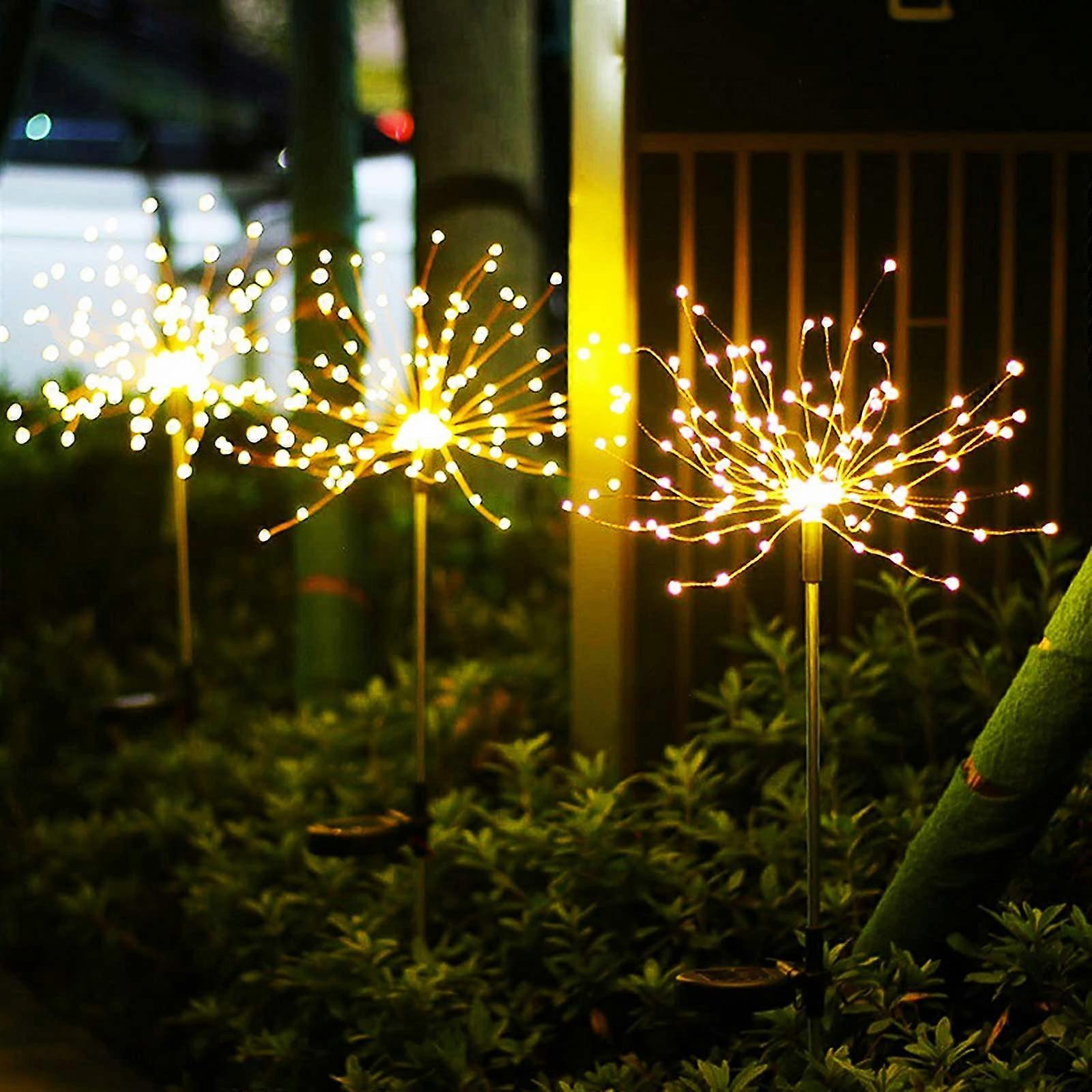 Solar Garden Lights 2 Pack 150 LED Waterproof Firework Lights DIY Color Light For Pathway Patio Lawn Backyard Warm Light