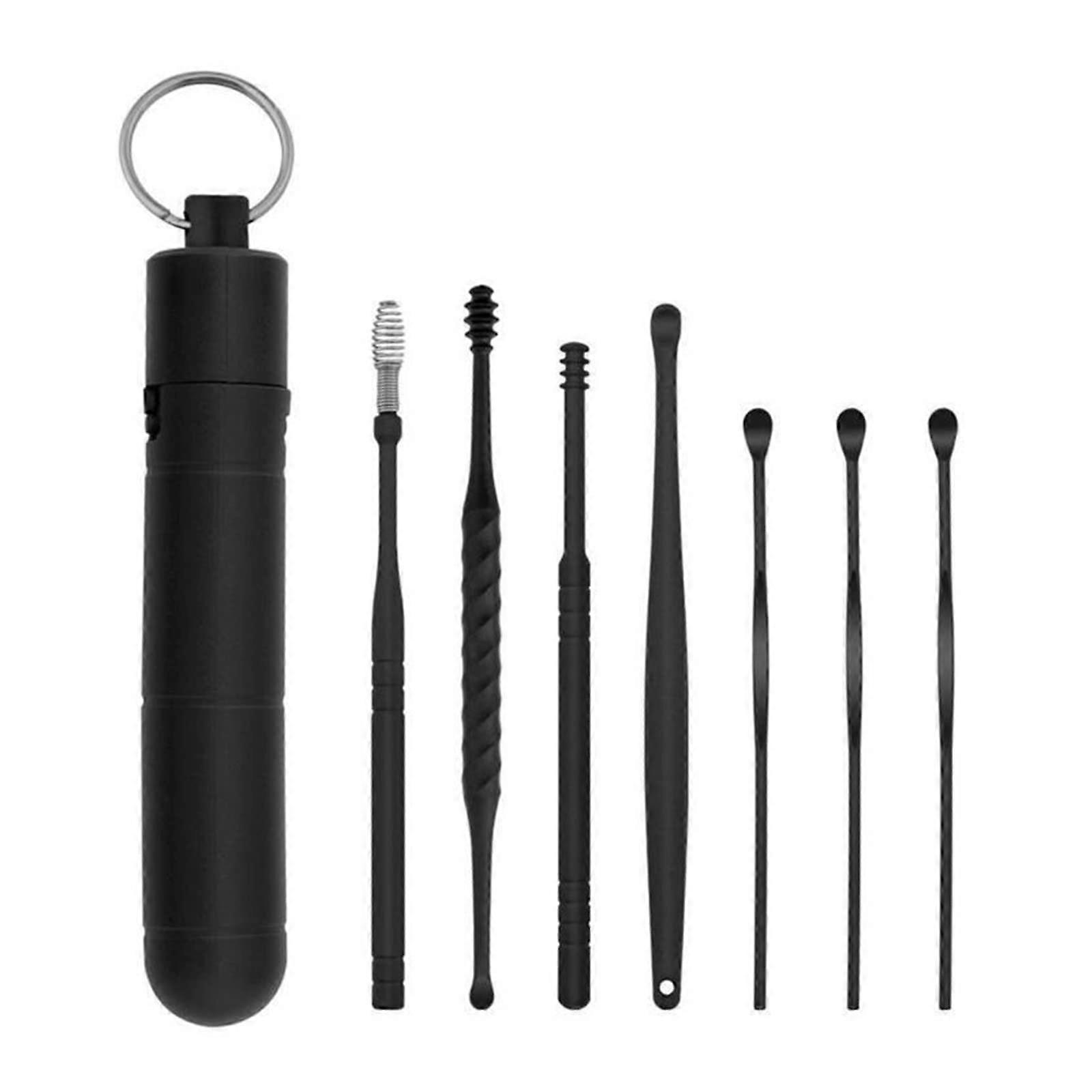 Ear Cleaner 7Piece Ear Wax Removal Tool Set Earpick Curette Reusable Spring Spoon Ear Pick Cleanser Color A