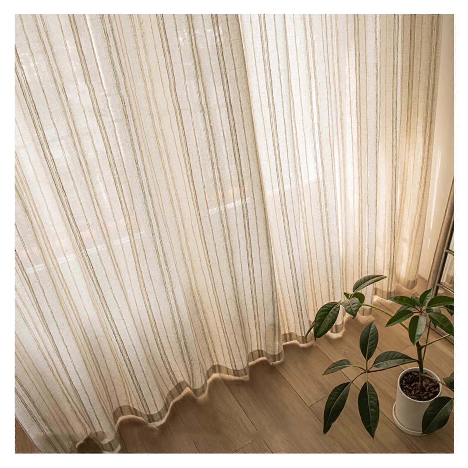 Linen Look Voile Curtain, Vertical Stripes Jacquard, SemiSheer, 2 Panels, Eyelet, W200xL250cm, Living Room