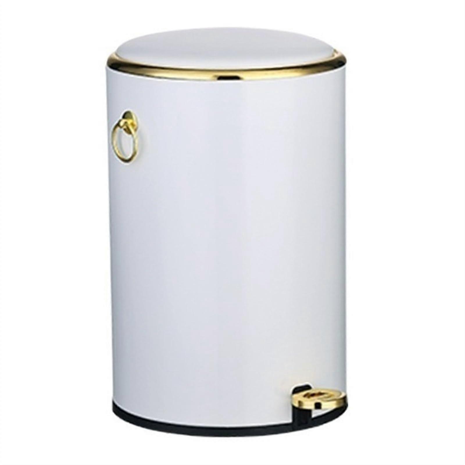 Indoor Trash Can Round Stainless Steel, White, Size L, Lid, SoftClose Pedal, Side Handle, Removable Liner