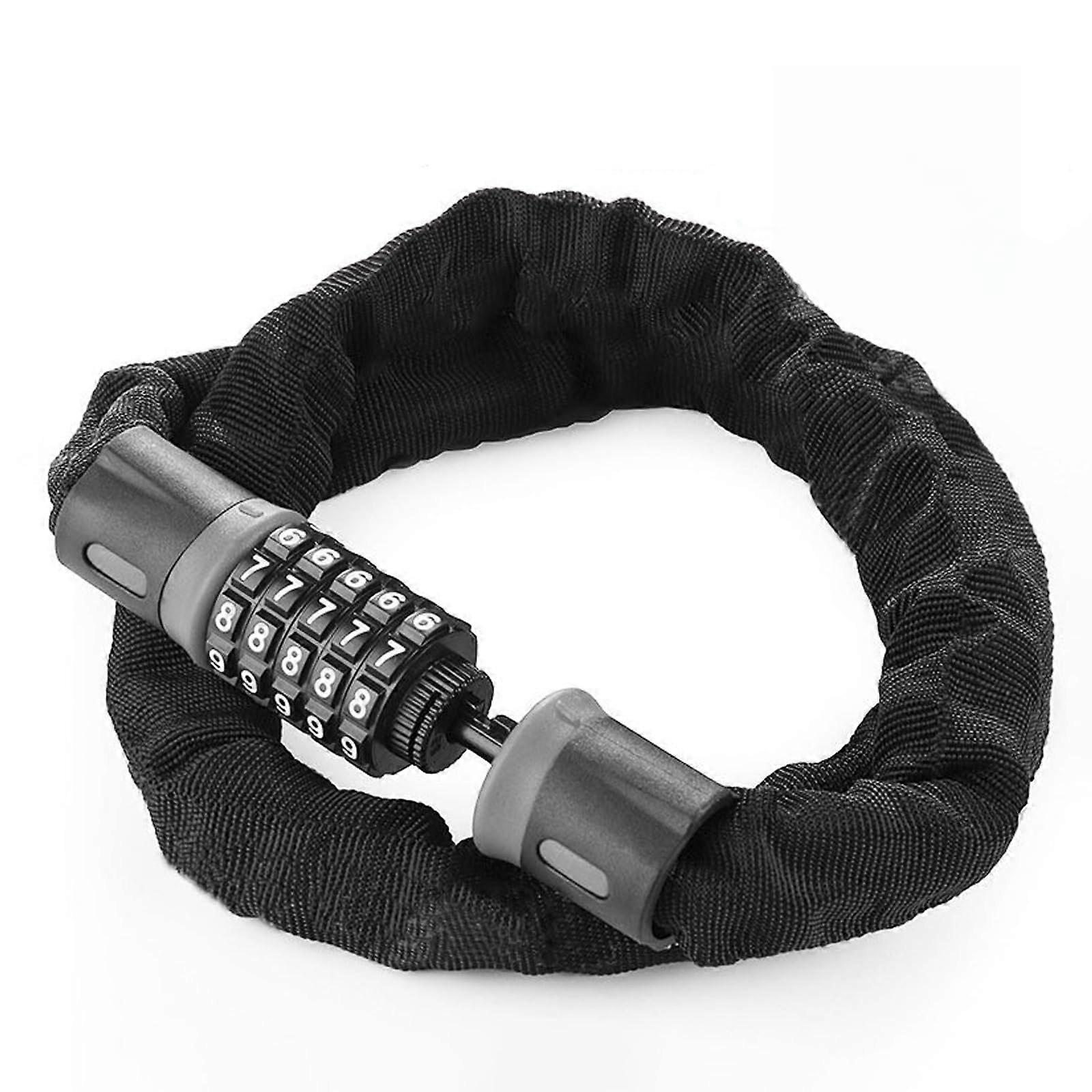 Bicycle Lock With Combination Lock Reinforced Alloy Steel Chain Polyester ScratchProtection Cover Black