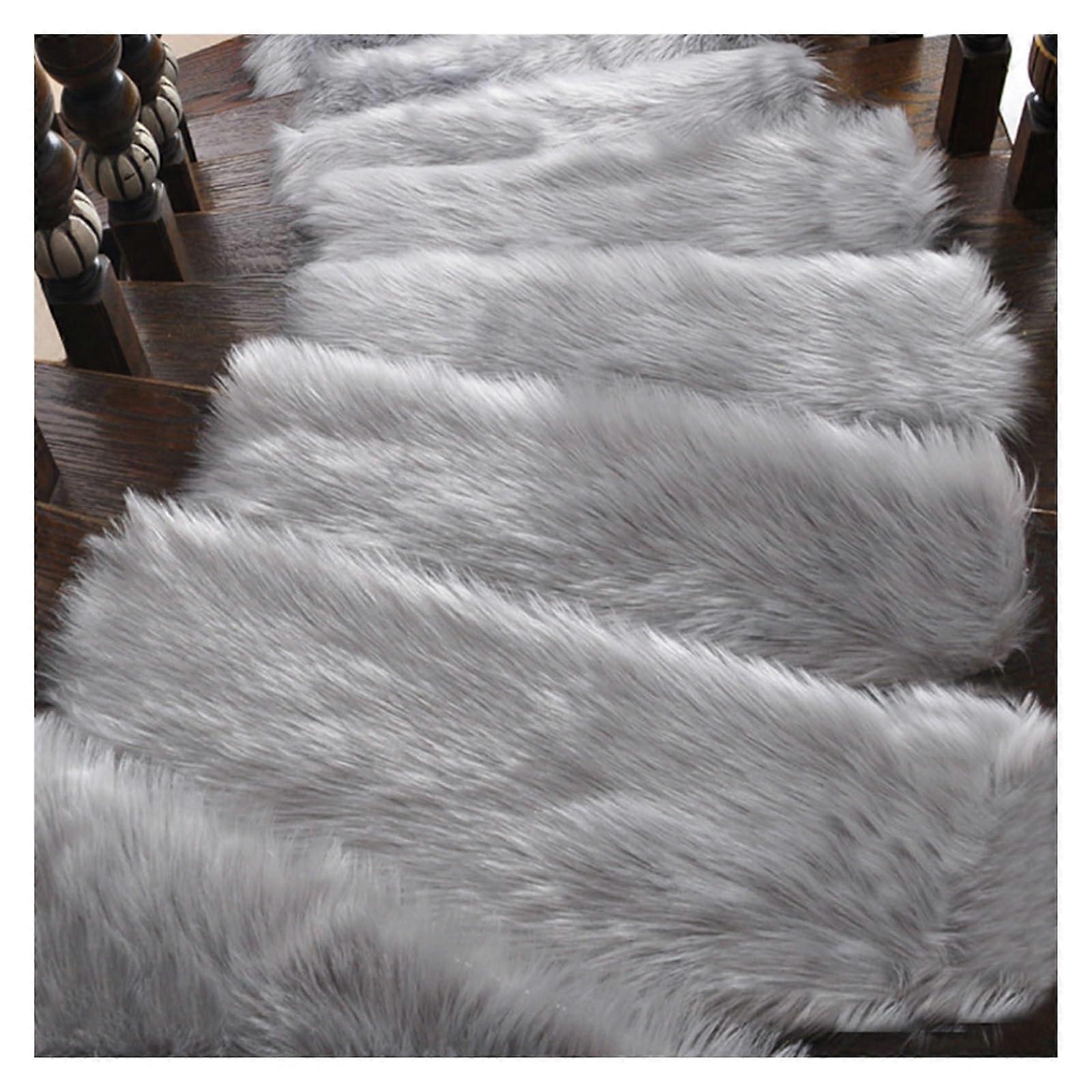 White Plush Non Slip Stair Treads For Indoor Stairs Self Adhesive Shaggy Mats For Wooden Steps Reusable Rugs