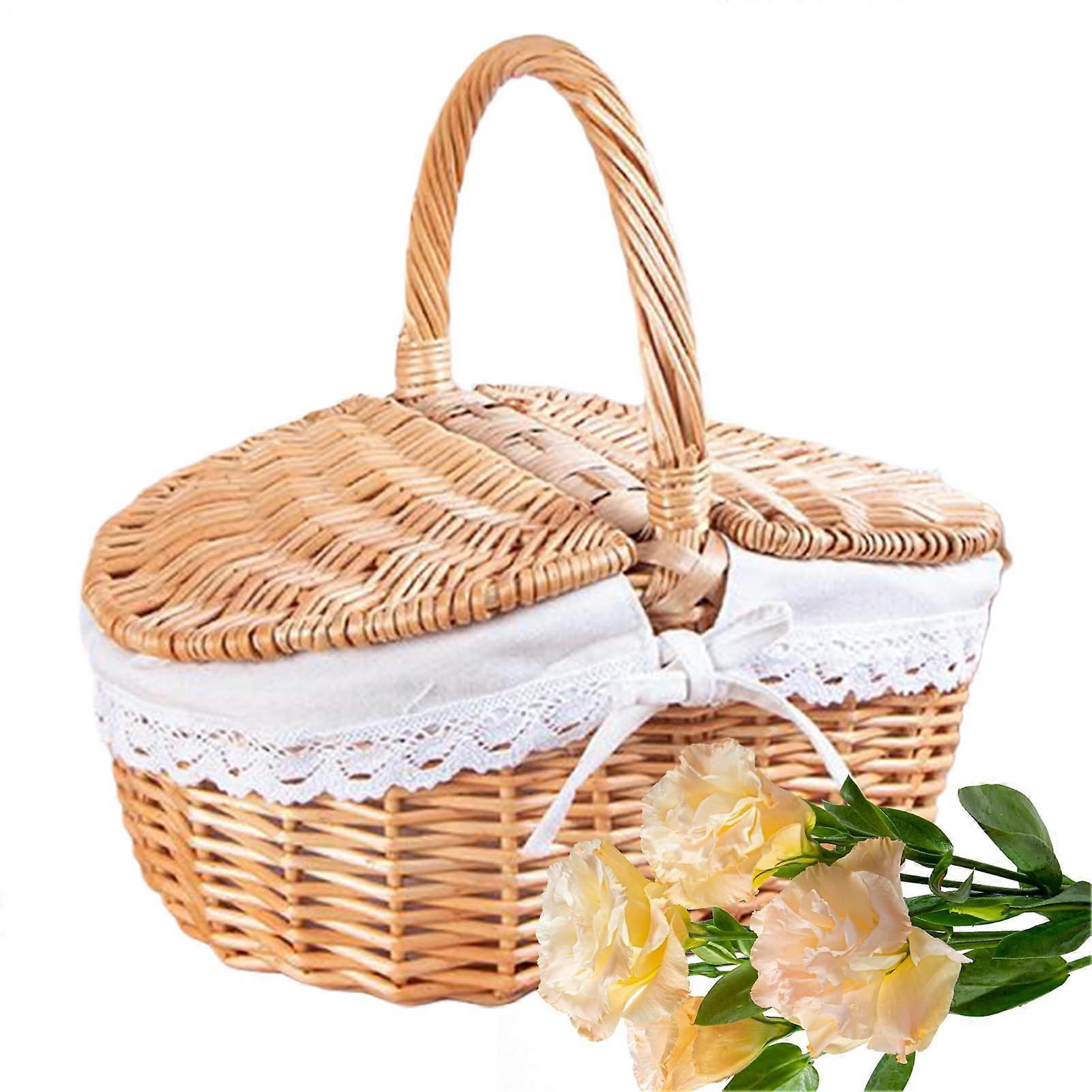 Wicker Picnic Basket With Handle, Handwoven Harvest Basket, Natural Rattan, Size 12x9x6, Beach Party Storage