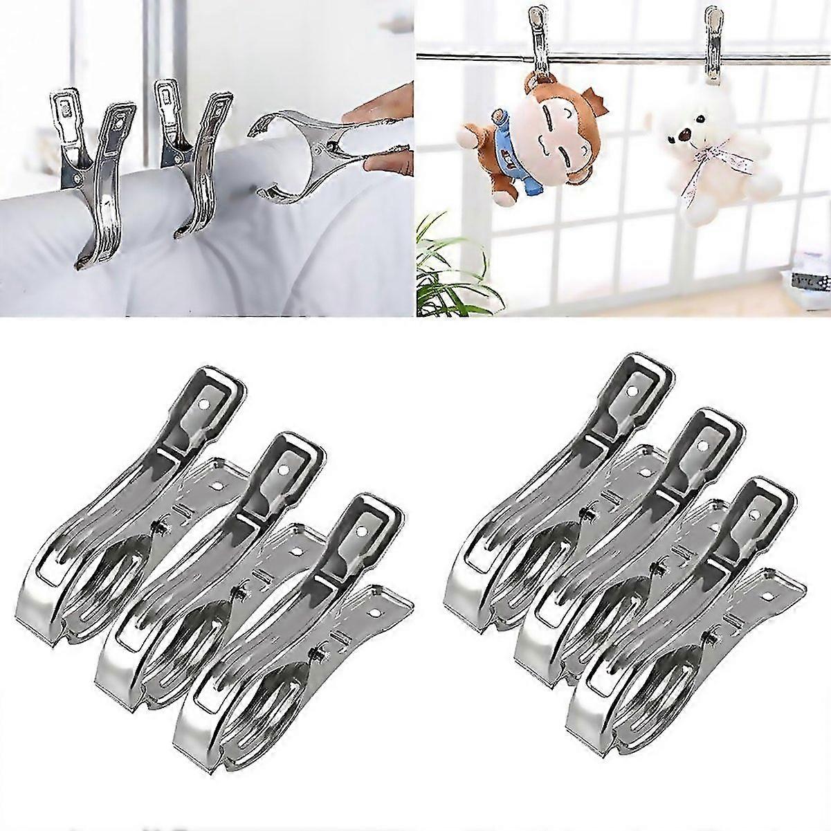 For 12 Pcs Stainless Steel Beach Towel Clips Wind Resistant For Heavy Clothing And Washing Silver