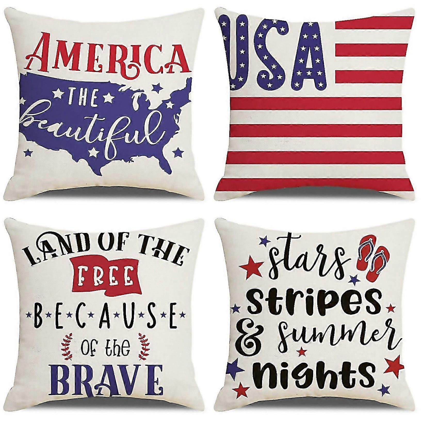For Set Of 4 Pillow Cases American Flag Patriotic Independence Day Celebration English Words Pillowc
