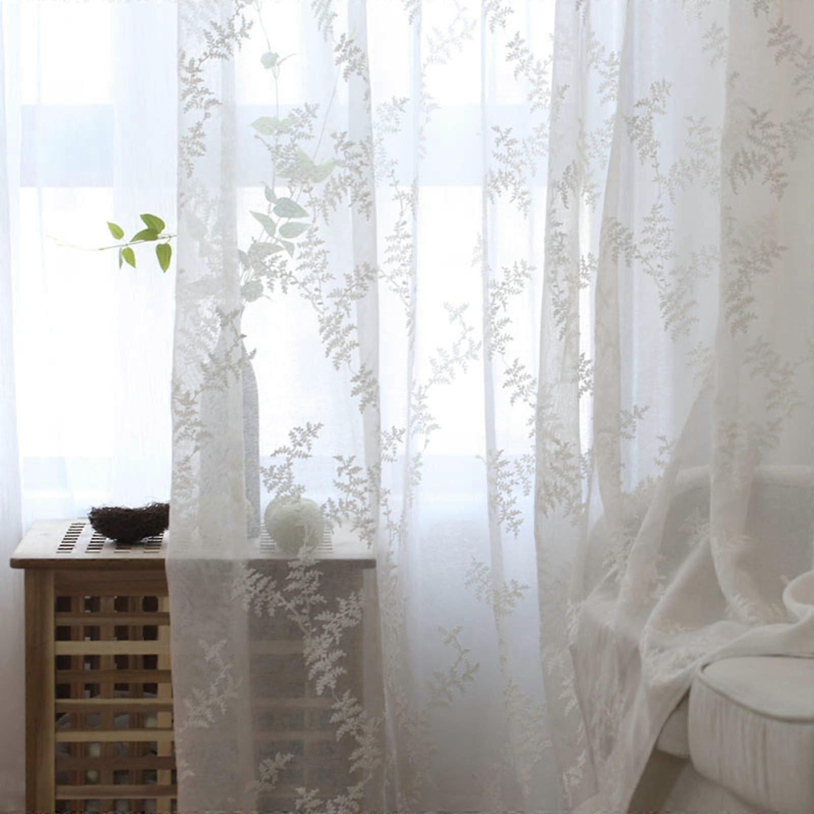 Retro Tulle Curtain For Living Room Balcony, SemiSheer Cotton Linen Embroidered, White, 200x270 cm, 1 Pc, Hooks