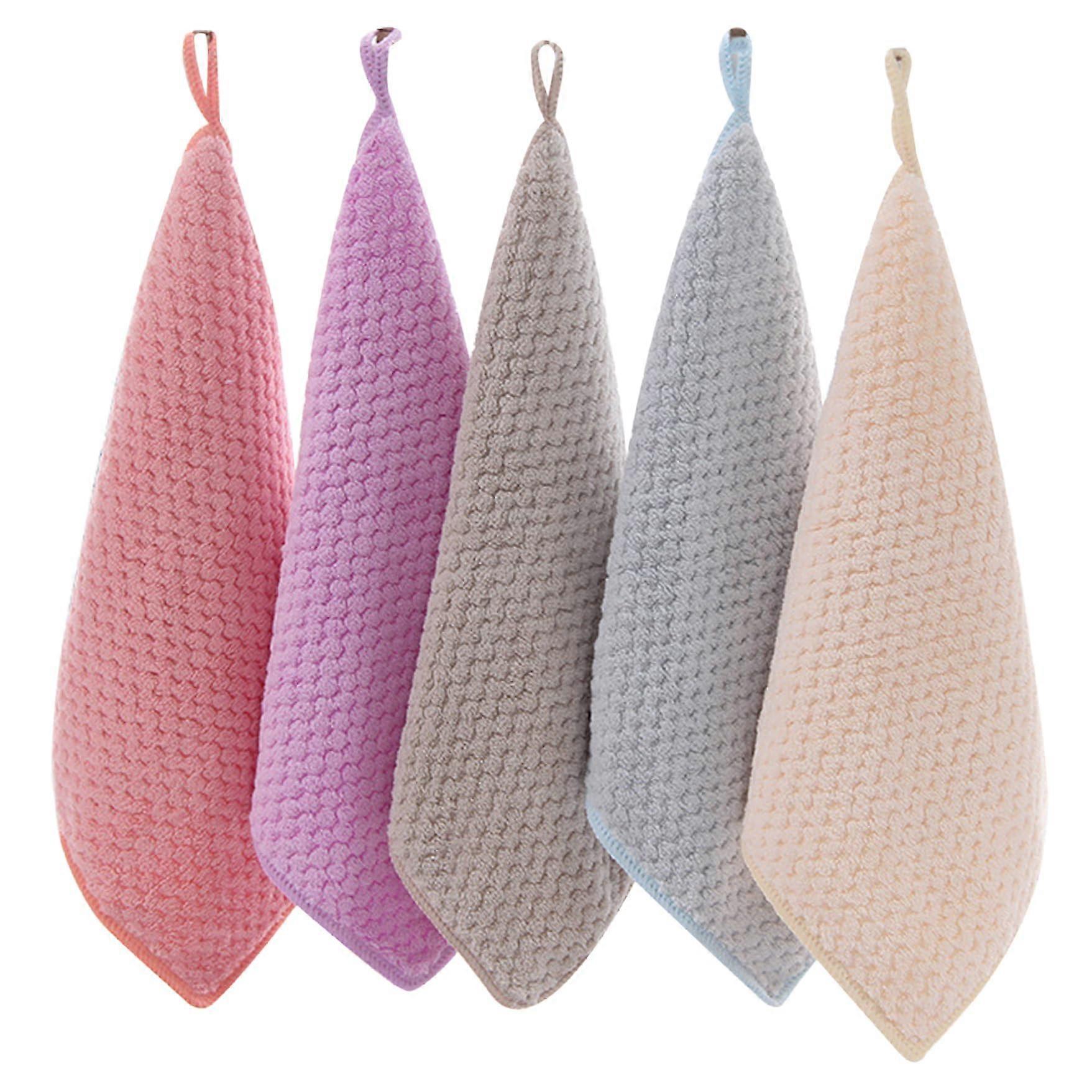 Hand Towels 5Pack With Hanging Loops 10x10 Inch Super Absorbent Small For Kitchen Bathroom Machine Washable Fast Drying