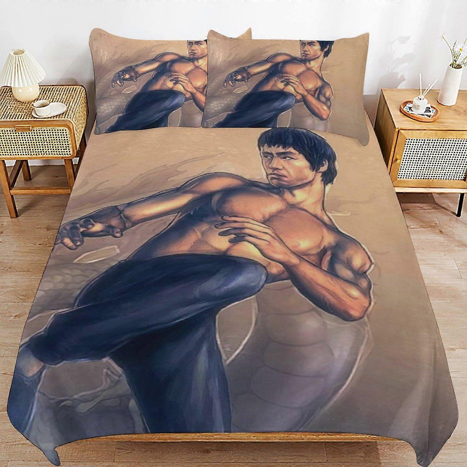 j586 Bruce Lee Bedding System Smooth Fabric Zipper Closure Comfortable Texture Soft Feel Duvet Cover Sets Pack k586