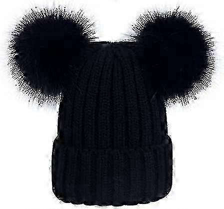 women's imitation fox fur beanie double pom pom winter hat